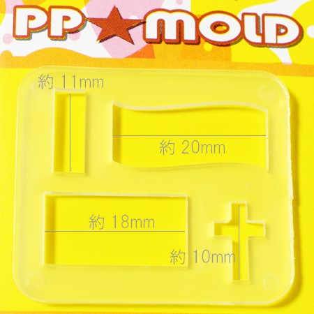 Happy Futureのオリジナルモールドです。樹脂粘土にも使えますが、レジンやシリコーンにくっつかないPP製なのでエポキシレジンやUVレジン、エポキシ接着剤にも使えます。アイデア次第で様々な使い方ができますよ!モールドの厚みは全て2mm。モールドは貫通したタイプで底はありません。 (モールド全体のサイズ35mm×30mm×2mm)