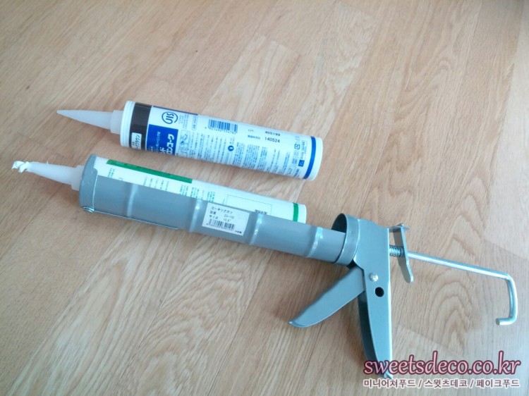 日本製のシリコンシーリング材には、ホワイト以外にもブラウンやアイボリーなどチョコホイップやバナナホイップの表現として使えるカラーがあります。日本のホームセンターに行けば簡単に手に入りますが、韓国の店頭では見かけません。韓国のネットショッピングモールや