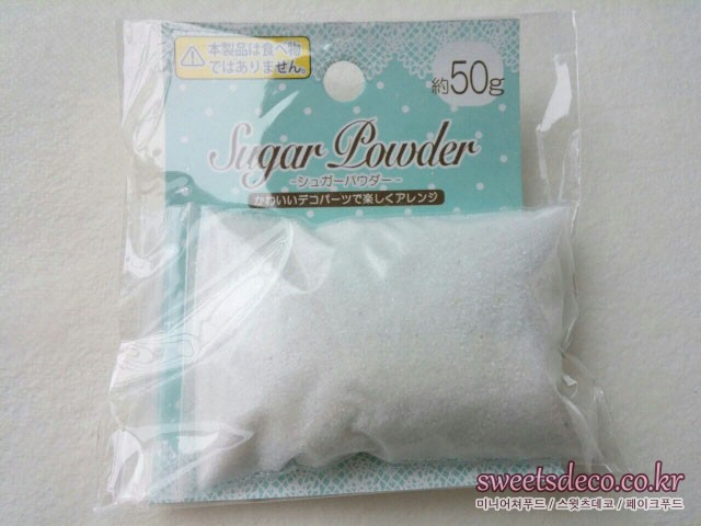 白の絵の具にベビーパウダーを混ぜて少し粉っぽくなったものを筆やスポンジにつけて作品の表面をたたくとジェッソ同様粉砂糖をかけたような表現が可能です。また、シリコーン製のホイップクリームが硬化する前にベビーパウダーをまぶしておき、シリコーンが硬化した後に余分なベビーパウダーを筆で払い落とすとシリコーンホイップに埃がつきにくくなります。その他にも、日本のスイーツデコ作家の